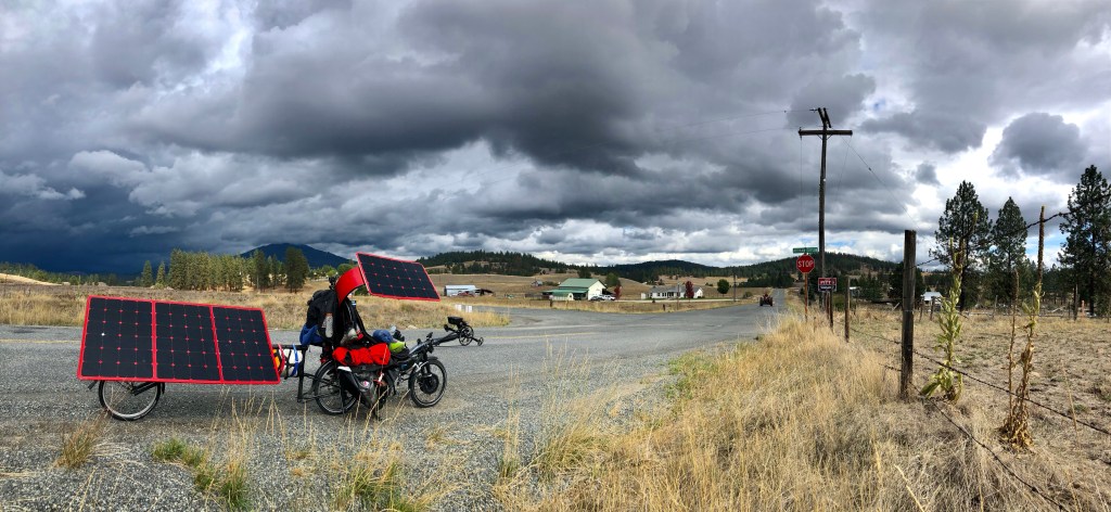 During my lunch stop, these deliciously dramatic clouds roll in. Instead of immediately seeking shelter, my dumb ass pauses to take photos. Minutes later, the wind picks up and big fat drops come crashing down.