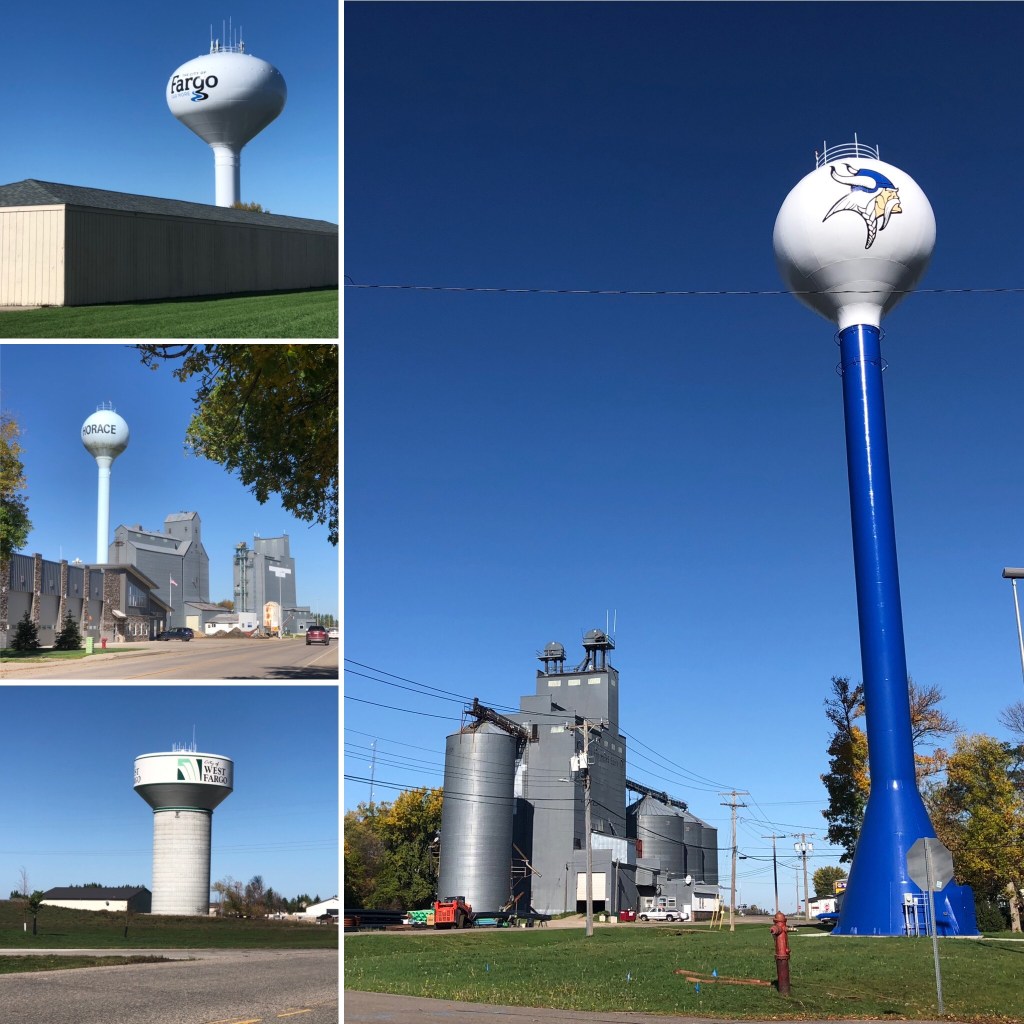 Out here, each small town first becomes visible on the horizon as a water tower and some grain elevators. I imagine these water towers as giant push pins on a 1:1 scale map.