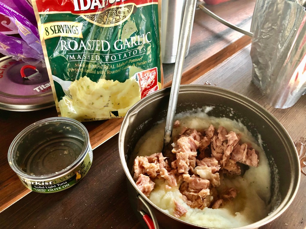 The Food of my People, Part 4: Instant mashed potatoes and tuna. It’s not something I would make at home but it’s a popular staple of touring cyclists in North America because it’s lightweight, compact, filling and can be found in most smaller grocery stores. I remember instant mashed potatoes tasting terrible last time I had them about 20 years ago but this Idahoan brand is pretty tasty.