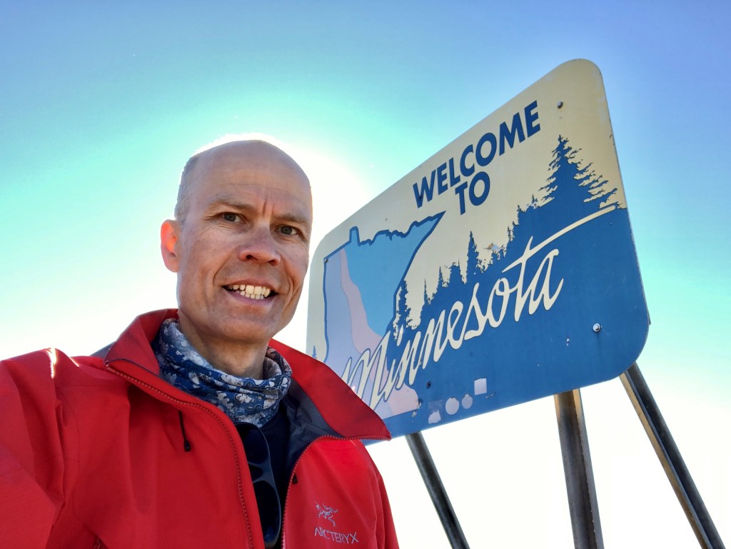 I cross the St. Croix River into Prescott, Wisconsin. The ACA route has me following the east bank of the Mississippi for the next three days and it looks like I won’t be crossing back into Minnesota. I seize the opportunity to collect my selfie with the Welcome to Minnesota sign that I didn’t get when I first entered the state.