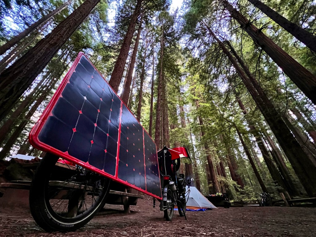 Number three is a fellow solar vehicle builder I met two years ago when I rode through LA. He and his wife are kind enough to host me for the night and ride out to the beach with me to see me off. I pass solar bike number four a couple of days later but there’s too much traffic to stop and chat. When I arrive at that night’s hike/bike site, the camp host has detailed photos of the mystery woman’s bike and I share some tips on how she can go about converting her own ebike to solar power.