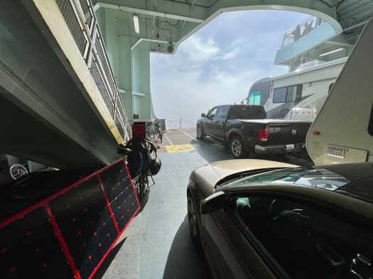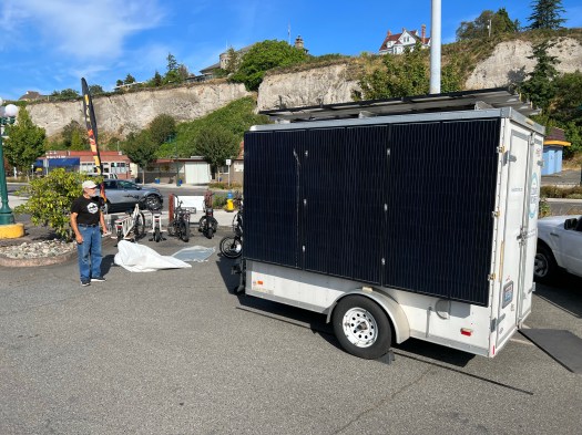 In Port Townsend, I catch my first ferry since San Diego. Near the ferry terminal, I meet John who is running a small ebike rental operation using a large trailer with solar panels on it for charging the bikes. Very cool.