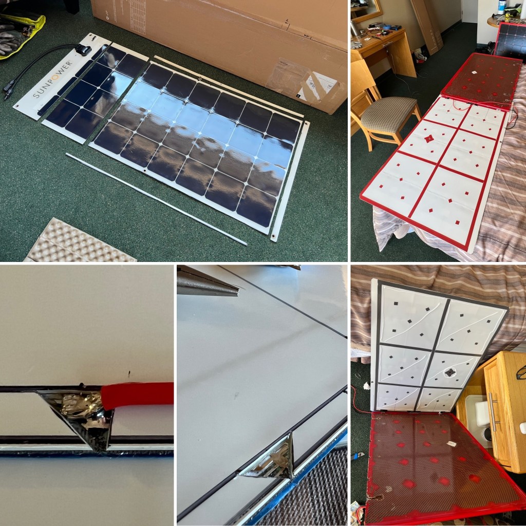 Cutting the solar panel down to fit my trailer is a delicate operation and takes a day and a half. Fortunately, I know how the panel was constructed so I know exactly where I can cut. Removing the EVA encapsulant and soldering new connections is a delicate surgical operation but the patient survives. The white back sheet on the new panel doesn’t match the rest of the bike but I think I can get used to it since it means that I’m back up to nearly 100% of my original solar capacity.