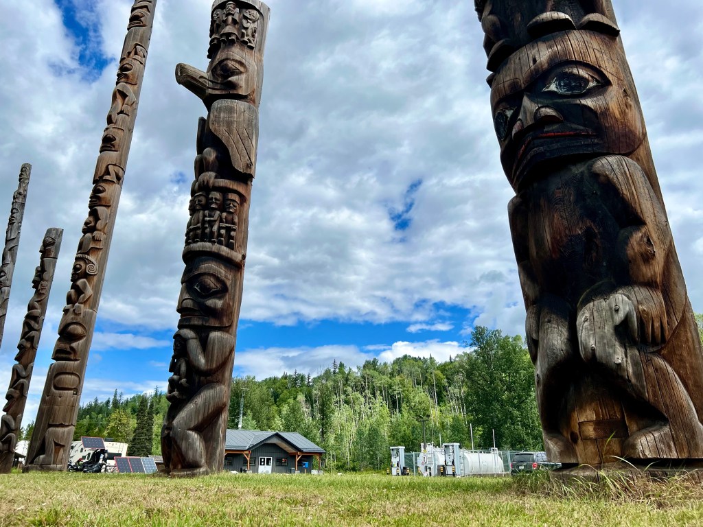 As I’m getting ready to make dinner in Dease Lake, two electric Rivian trucks pull into the RV park. Curious about how they’ve made it this far in terms of charging stations or lack thereof, I walk over to have a look. The passenger door swings open and out pops a young man who runs around the vehicle and shakes my hand. Kendrick works for Rivian in the “customer experience” department.
