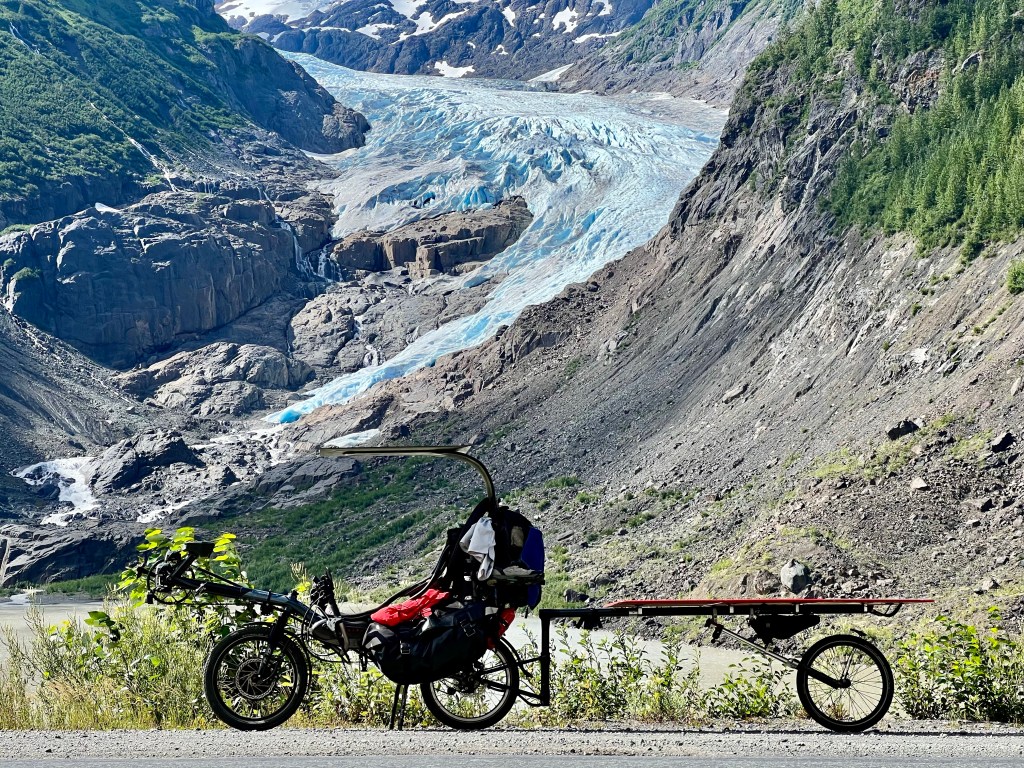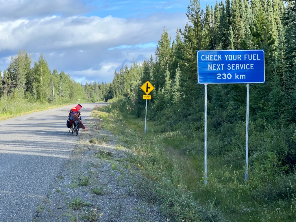 I follow the Yellowhead Highway to the Cassiar Highway and begin the first truly remote stretches of this journey. Food resupply options are 2 to 3 days apart, more if the weather is rainy. There is no phone or internet connectivity of any kind. I plan my days around off-line route elevation profiles I saved ahead of time and read the weather by scanning the clouds on the horizon. Refilling my water is a matter of stopping at the next glacial mountain creek and running it through my filter.