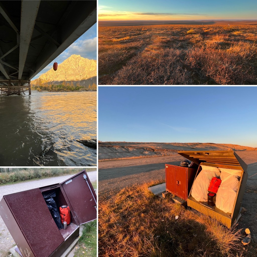 The tallest plants all the way out to the horizon barely reach up to your knees because you are now in the tundra. This makes hanging your food bag in a tree to keep it away from bears rather difficult. Creative solutions are needed. I hang my bag from a bridge one night and stash it in the back of bear-proof trash containers several times.