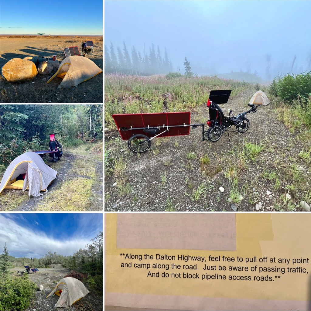 When asking about camping options, locals tell you, “You can camp anywhere. Nobody’s going to bother you.” Highway rest areas no longer have signs prohibiting overnight stopping and camping. In fact, the Arctic Interagency Visitor Center uses the wording, “Along the Dalton Highway, feel free to pull off and camp anywhere along the road.” Bike touring heaven.