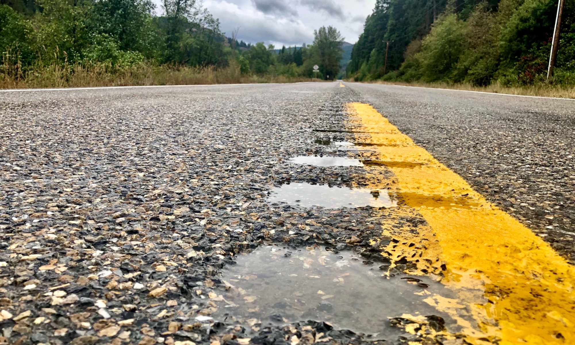 I wake up in Wauconda to cloudy skies, 1% battery and not enough stove fuel to make coffee. The next town with services is 16 miles and 1000’ climbing away. Also, it looks like it may rain. Also, there’s no internet. I don’t much care for these rumble strips in the middle of the road …